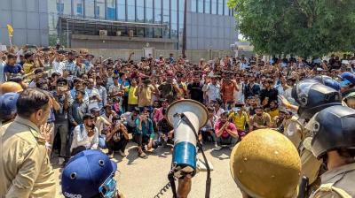 नोएडा : उत्तर प्रदेश के गौतमबुद्धनगर जिले में वेतन बढ़ाने की मांग को लेकर कल हुए हिंसक प्रदर्शन के बाद नोएडा के फेज 2 में प्रदर्शनकारी आज फिर से जमा...