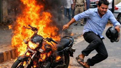 कोर्ट परिसर के नजदीक बाइक में लगी आग, चालक ने कूदकर बचाई जान