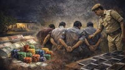पुलिस की कार्रवाई में पकड़े गए जुआरी, घरों से निकालकर थाना पहुंचाया