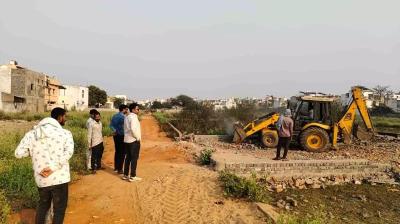 रायपुर में 6 एकड़ अवैध प्लाटिंग पर चला बुलडोजर, सड़क और बाउंड्रीवाल तोड़ी