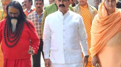बलात्कार के आरोपी दाती बाबा का भव्य अभिनंदन, पूर्व गृहमंत्री की भूमिका पर सवाल