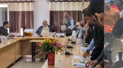अमरकंटक में केन्द्रीय वस्त्र मंत्री गिरिराज सिंह ने मां नर्मदा की पूजा-अर्चना बाद बैठक,,संवाददाता - श्रवण कुमार उपाध्याय