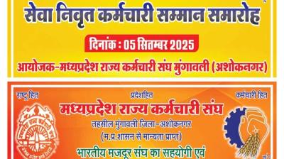मप्र राज्य कर्मचारी संघ करेगा सेवानिवृतों का सम्मान,,रिपोर्ट@भारतेन्द्र सिंह बेस अशोकनगर