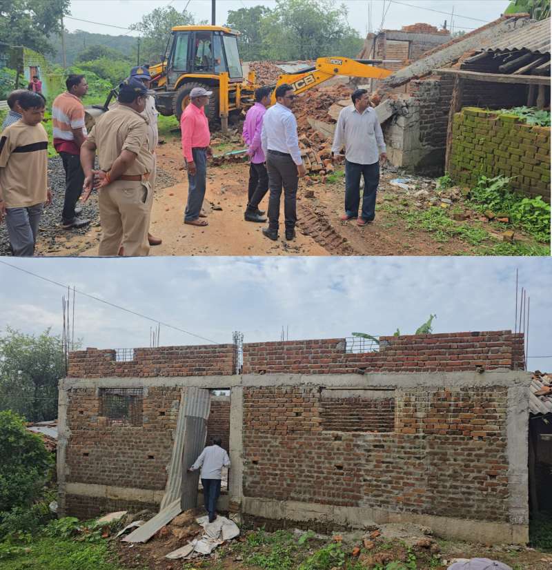 अमरकंटक - मां नर्मदा जी की उद्गम स्थली / पवित्र नगरी अमरकंटक में आज गुरुवार को वार्ड क्रमांक 15 जमुना दादर क्षेत्र के गली नंबर 4 में आज सुबह नगर पालिका अमरकंटक की राजस्व टीम ने थाना अमरकंटक पुलिस बल के सहयोग से बड़ी कार्रवाई की । शासकीय भूमि पर अतिक्रमण कर बनाए गए अवैध मकान को जेसीबी मशीन की मदद से ध्वस्त कर दिया गया ।