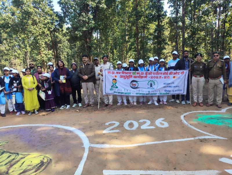 शहडोल जयसिंहनगर आज दिनांक 13-01-2026 को वन परिक्षेत्र अमझोर अंतर्गत बीट सीधी PF 456 रजवा पड़ाव तेंदूडोल में अनुभूति कार्यक्रम का आयोजन किया गया। कार्यक्रम में शासकीय कन्या पूर्व माध्यमिक विद्यालय अमझोर और शासकीय बालक पूर्व माध्यमिक विद्यालय अमझोर के 126 छात्र छात्राएं व 08 अध्यापक उपस्थित रहे। कार्यक्रम की शुरुआत में छात्र छात्राओं को अनुभूति किट,अनुभूति टोपी, अनुभूति बुकलेट डायरी,पेन व अनुभूति बैग वितरण किया गया। सभी को स्वल्पाहार कराया गया। कार्यक्रम में अनुभूति वर्ष 2025-26 की नई थीम "हम हैं धरती के दूत" के बारे बताया गया। बच्चों से "हम हैं धरती के दूत, हम हैं बदलाव, मै भी बाघ , गीत का गायन कराया गया। सभी को ईको पर्यटन, सर्प हमारे मित्र, संरक्षित क्षेत्र के बारे बताया गया।तत्पश्चात प्रकृति पथ भ्रमण कराया गया। जिसमें पेड़ पौधों ,जीव जंतुओं व जड़ी बूटियों के बारे में जानकारी दी गई और पर्यावरण संरक्षण के प्रति जागरूक किया गया। कार्यक्रम में SDM जयसिंहनगर,ग्राम पंचायत भर्री के सरपंच, पंच व वन सुरक्षा समिति के अध्यक्ष व सदस्य उपस्थित रहे । तत्पश्चात सभी को दोपहर का भोजन कराया गया। इसके बाद बहुविकल्पी क्विज लिया गया प्रथम तीन स्थान प्राप्त करने वाले को पुरस्कार वितरण किया गया। कार्यक्रम का समापन शपथ ग्रहण पश्चात राष्ट्रगान के साथ किया गया। कार्यक्रम में वन परिक्षेत्र अमझोर का समस्त स्टाफ उपस्थित रहा।
