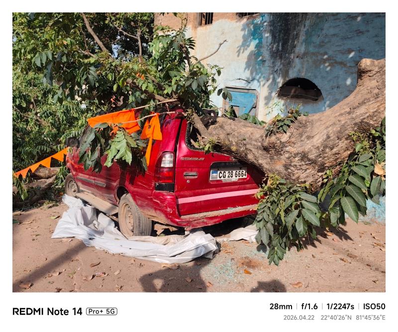 जानकारी के अनुसार 21-22 अप्रैल की दरम्यानी रात यह घटना हुई , जबकि उस समय न तो तेज हवा चली और न ही आंधी-तूफान आया था । गनीमत रही कि वाहन में कोई व्यक्ति मौजूद नहीं था । वहां क्रमांक सीजी 28 /6664 वृक्ष के पास खड़ी थी । घटना के बाद स्थानीय लोगों ने जर्जर पेड़ों की समय पर जांच और कटाई-छंटाई की मांग की है ।