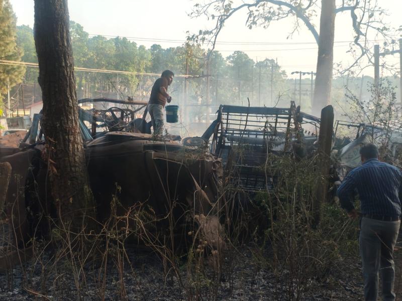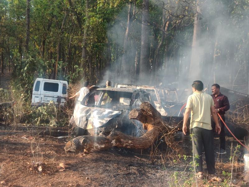 अमरकंटक थाना परिसर में खड़े वाहनों को आग ने लिया अपने आगोश में ,जंगल की आग बनी मुसीबत,,संवाददाता - श्रवण कुमार उपाध्याय