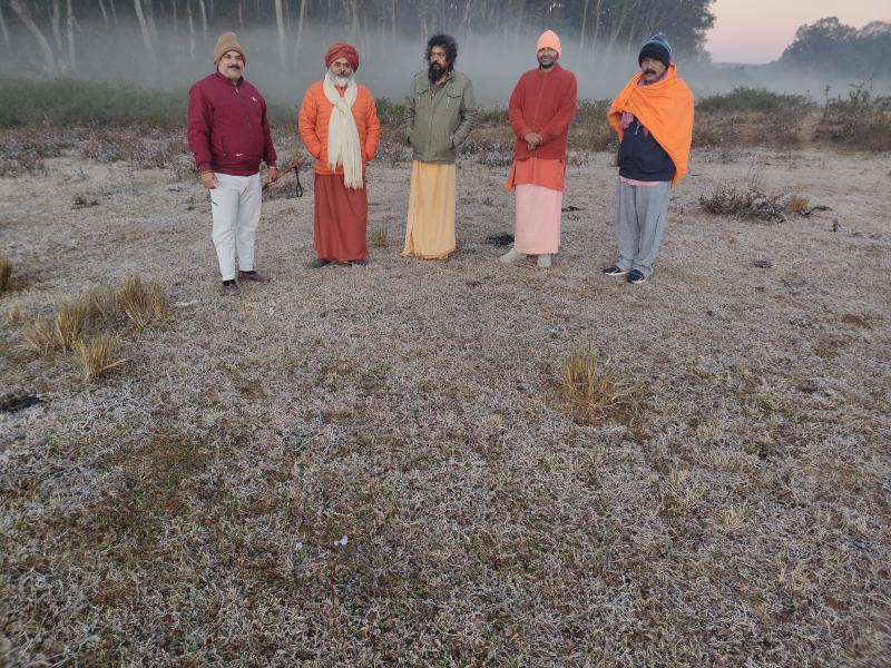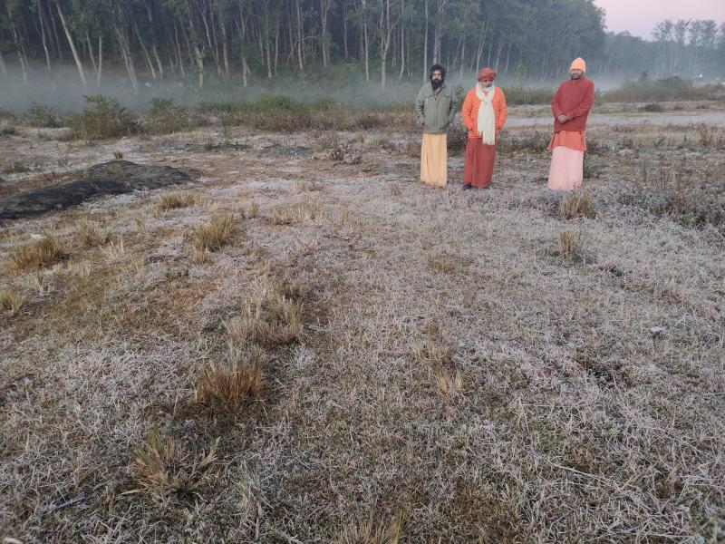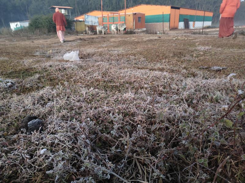 सुबह भ्रमण के दौरान शांति कुटी आश्रम के स्वामी श्रीमहंत रामभूषण दास जी महाराज , कामदगिरि सेवा आश्रम के संत अखिलेश्वर दास जी महाराज तथा परमहंस धारकुंडी आश्रम के लवलीन बाबा महाराज ने जमी हुई ओस की परत पर पैदल भ्रमण किया और प्रकृति के इस अद्भुत नजारे का भरपूर आनंद लिया ।