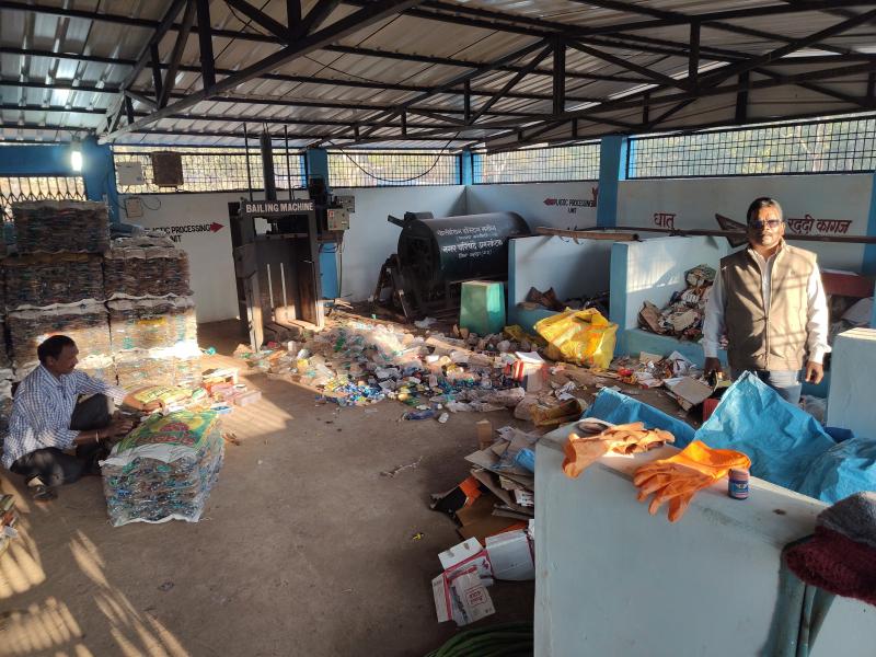 सूखे कचरे जैसे कांच की बोतलें , प्लास्टिक की बोतलें आदि को प्रेशर मशीन के माध्यम से दबाकर बंडल तैयार किए जाते हैं । पर्याप्त मात्रा में बंडल तैयार होने पर इन्हें बड़े वाहनों के जरिए बाहर के बड़े शहरों की फैक्ट्रियों अथवा प्लांटों में भेजा जाएगा ।