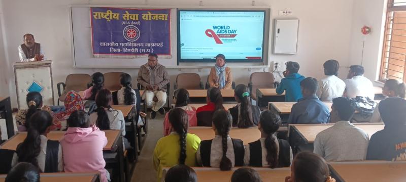 गाड़ासरई/ शासकीय महा विद्यालय गाडासरई में रेड रिबन क्लब व स्वामी विवेकानंद कैरियर मार्गदर्शन के संयुक्त तत्वाधान मे महाविद्यालय के प्रभारी प्राचार्य प्रमोद कुमार वासपे के मार्गदर्शन मे 1 दिसंबर विश्व एड्स दिवस के अवसर पर जन जागरूकता से संबंधित कार्यक्रम आयोजित किये गए, साथ ही एडस 2025 की थीम बाधाओं पर विजय" एडस प्रतिक्रिया में परिवर्तन को लेकर व्याख्यान माला का भी आयोजन किया गया जिसका का उदेश्य विद्याथियों के बीच एड्स महामारी के बारे मे जन जागरूकता बढ़ाना, एच आई वी पीड़ित व्यक्तियों की मदद करना, साथ ही H.i.v. से पीड़ित व्यक्तियों के साथ समनुभूति पूर्ण व्यवहार करना। इस दौरान महा विद्यालय के प्राध्यापक डॉ भगवत झरिया ने अपने उद्बोधन में कहा कि किस तरह से युवा इस महामारी के विरुद्ध जागरूकता के प्रसार में अपनी व्यापक भूमिका का निर्वहन कर सकते हैं। एड्स रोगी के साथ किसी भी प्रकार के भेदभावपूर्ण व्यवहार की आवश्यकता नहीं है और अज्ञानतावश लोग ऐसा व्यवहार करते हैं। डॉ अदिति पिटानिया ने भी अपने विचार व्यक्त किये |