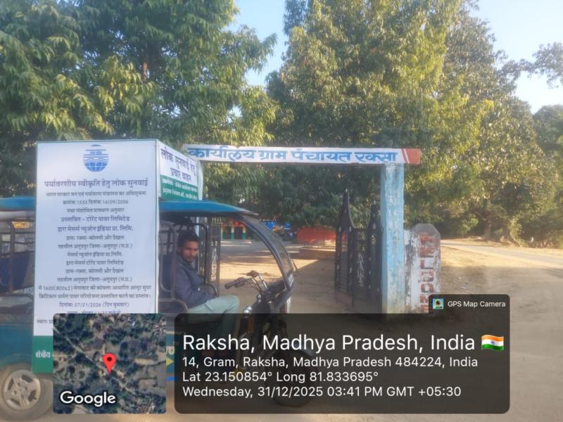 अनूपपुर जिले के रक्सा–कोलमी क्षेत्र में प्रस्तावित औद्योगिक परियोजना के संबंध में पर्यावरणीय स्वीकृति प्रदान करने की प्रक्रिया के तहत पर्यावरण संरक्षण विभाग, मध्य प्रदेश द्वारा दिनांक 7 जनवरी 2026 को पर्यावरण जनसुनवाई का आयोजन किया जाना सुनिश्चित किया गया है। यह जनसुनवाई न्यू जोन इंडिया एवं (टोरंट पावर प्राइवेट लिमिटेड) द्वारा प्रस्तावित परियोजना के लिए आयोजित की जा रही है।