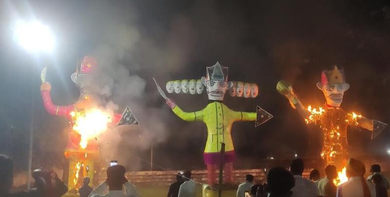 स्टेडियम में जैसे ही रावण का पुतला अग्नि के हवाले किया गया, चारों ओर जय श्रीराम के उद्घोष गूंज उठे। आतिशबाजी ने वातावरण को और भी रोमांचक बना दिया। दशहरा पर्व का यह आयोजन नगर के लिए अविस्मरणीय बन गया।