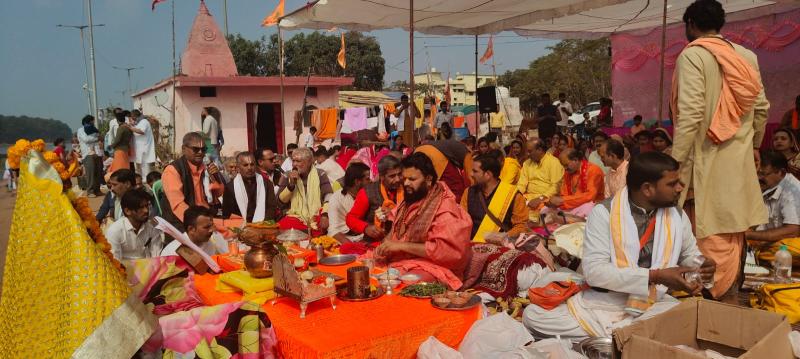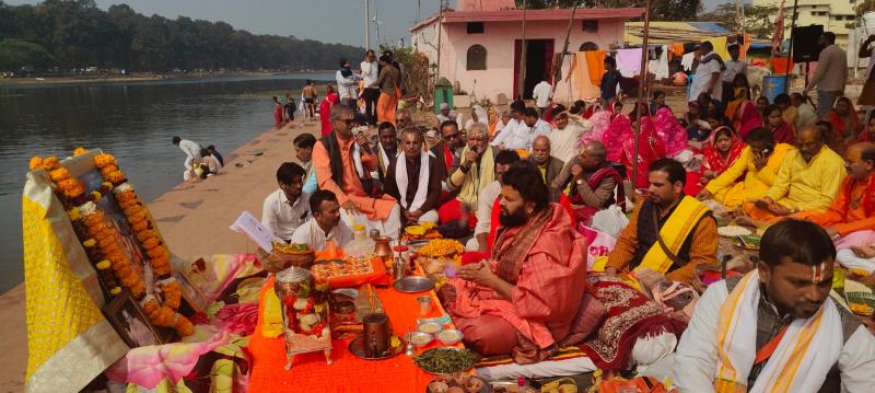 अमरकंटक - मां नर्मदा जी की उद्गम स्थली/पवित्र नगरी अमरकंटक में रविवार 25 जनवरी 2026 को मां नर्मदा प्रकटोत्सव पावन पर्व के अवसर पर नर्मदा तट स्थित रामघाट में भव्य नर्मदा सहस्त्र (1008 नाम) अर्चन का आयोजन किया गया । इस धार्मिक अनुष्ठान का नेतृत्व राम जानकी मंदिर बुढार एवं दक्षिण काली पीठ आश्रम इंदौर के महंत स्वामी श्री अर्जुन दास जी महाराज ने किया ।