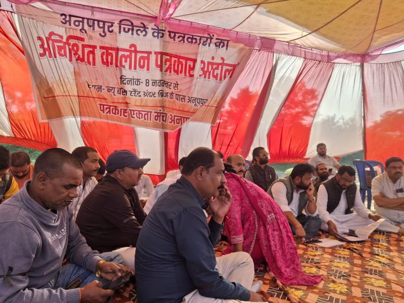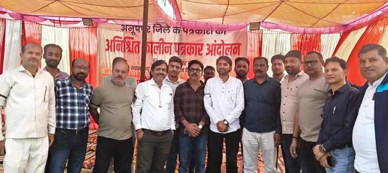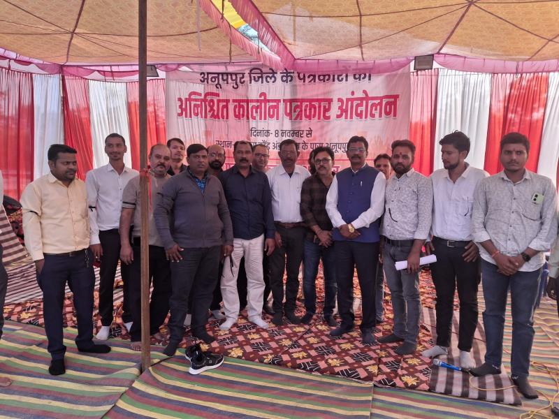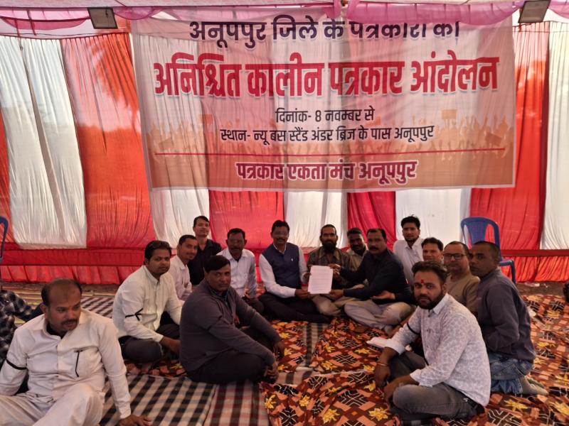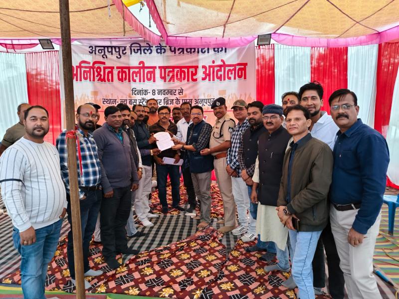वान्टेड टाइम्स अनूपपुर।अनूपपुर जिले में पत्रकारों के साथ हो रही लगातार बर्बरता, फर्जी मुकदमों और प्रशासन की उदासीनता ने आखिरकार पत्रकारों के सब्र का बांध तोड़ दिया। 8 नवंबर 2025 को जिलेभर से जुटे पत्रकारों ने न्यू बस स्टैंड अंडरब्रिज के पास आवाज़ बुलंद करते हुए अनिश्चितकालीन आंदोलन का आगाज़ किया था।इस आंदोलन को समर्थन देने छत्तीसगढ़ से आए पत्रकार जितेंद्र जायसवाल, कर्मुनिशा और अमित गुप्ता ने भी इस संघर्ष में कंधा मिलाया। सबने एक सुर में कहा "हम डरेंगे नहीं, झुकेंगे नहीं, सच्चाई लिखते रहेंगे!"