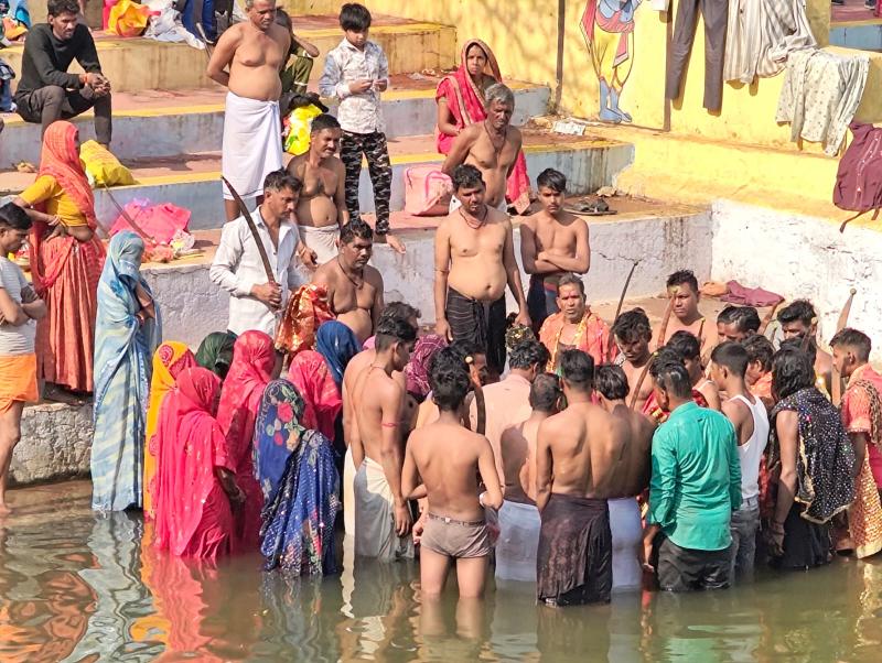 अमरकंटक - मां नर्मदा जी की उद्गम स्थली / पवित्र नगरी अमरकंटक के धार्मिक एवं आध्यात्मिक आस्था की पावन नगरी में इन दिनों मालवा अंचल से बड़ी संख्या में पहुंचे भक्त श्रद्धालु अपने कुलदेवी-देवताओं तथा उनके अस्त्र-शस्त्रों की पारंपरिक विधि-विधान से पूजा-अर्चना कर रहे हैं । पतित पावनी मां नर्मदा के पावन तट रामघाट के उत्तर एवं दक्षिण तट पर मालवा क्षेत्र से आए श्रद्धालु पारंपरिक वेशभूषा में भजन-कीर्तन और पूजा-पाठ में लीन दिखाई दे रहे हैं ।