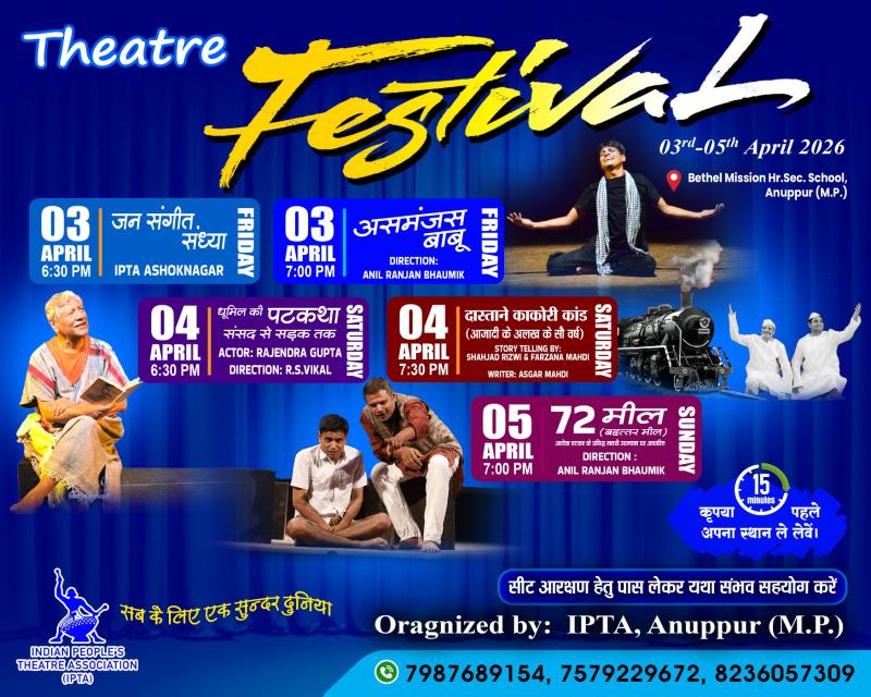प्रदेश भर के रंग कर्मियों का महाकुंभ इप्टा का नाट्य महोत्सव तथा राज्य सम्मेलन अनूपपुर में