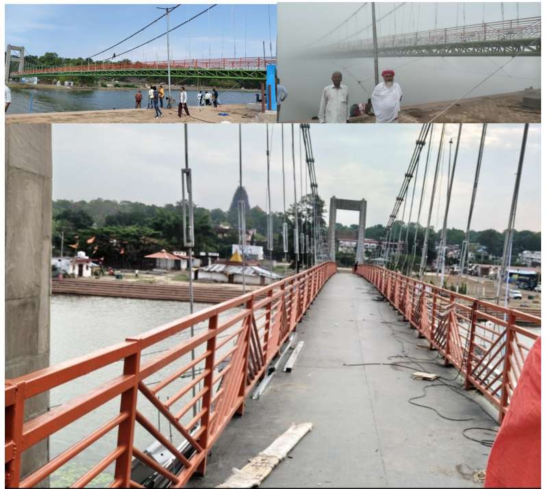 अमरकंटक / मां नर्मदा जी की उद्गम स्थली पवित्र नगरी अमरकंटक मध्य प्रदेश के प्रमुख पर्यटन एवं धार्मिक तीर्थ स्थल में मां नर्मदा नदी तट रामघाट के उत्तर तट से दक्षिण तट तक को जोड़ने वाला झूला पुल विकास एवं सौंदर्यीकरण के तहत केंद्रीय पर्यटन मंत्रालय से प्राप्त निधि से प्रसाद योजना के तहत मध्य प्रदेश पर्यटन विकास निगम द्वारा राम घाट में 10 करोड रुपए की लागत से निर्मित झूला पुल का कार्य पूर्ण हो गया है । उक्त पुल में विद्युतीकरण (लाइट सजावट) का कार्य अंतिम चरण में है । रात्रि काल में रंगीन विद्युत झालरों से आकर्षक एवं भव्य स्वरूप में दिखे , इस हेतु रंगीन विद्युत झालरों से सुसज्जित किया जा रहा है ताकि झूला पुल आकर्षक एवं भव्य स्वरूप में देखा जा सके । झूला पुल के विद्युत झालरों के टेस्टिंग का कार्य किया जा रहा है । उक्त प्रक्रिया अंतिम मई तक पूर्ण होने की संभावना जताई जा रही है । सानिध्य इंटरप्राइजेज के टेक्निकल इंजीनियर अजय उरमालिया ने बताया कि विद्युतीकरण का कार्य जल्द समाप्त हो जाता पर अमरकंटक के बंदरों का तांडव हमे काफी परेशान कर डाला । झालरों को दांत से कटना , झूलना , खींचना इत्यादि बदमाशियों के कारण कुछ लेट हो गए साथ ही रात्रि कालीन में कई बार कुछ सामान लोगो द्वारा भी चोरी हुआ जिस कारण भी कार्य में देरी का कारण रहा ।