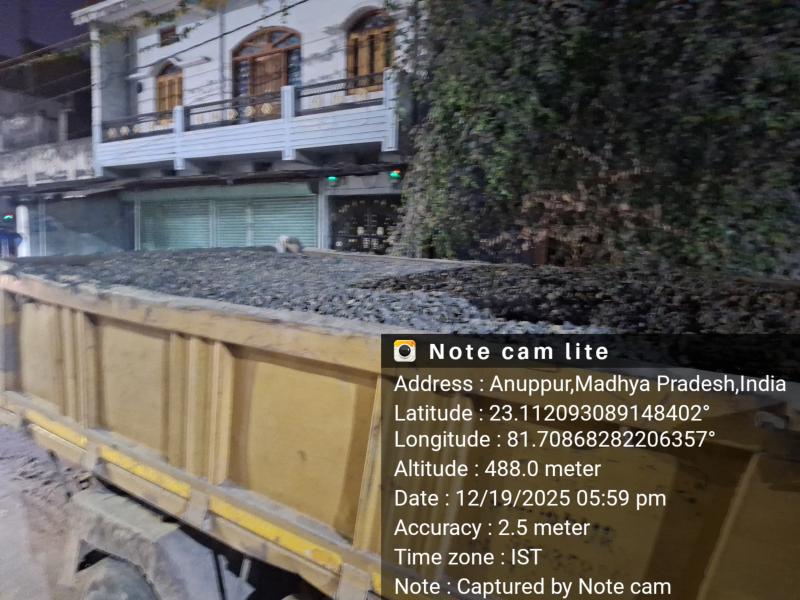 दिनांक 19 दिसंबर 2025 को ट्रक क्रमांक MP65GA2551 की टीपी लगभग दोपहर 1 बजे काटी गई, जिसकी वैधता मात्र 3:30 बजे तक थी। इसके बावजूद यही वाहन शाम 5:59 बजे जिला मुख्यालय के वार्ड क्रमांक 9 में गिट्टी का परिवहन करता हुआ देखा गया। इस गंभीर मामले की जानकारी कलेक्टर अनूपपुर को भी दी गई, लेकिन प्रशासन ने इसे नजरअंदाज करना ही उचित समझा।