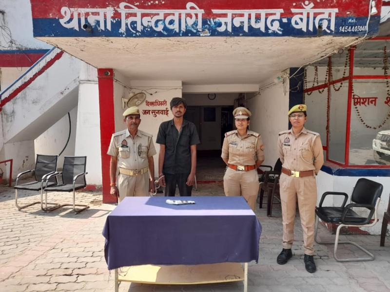 बांदा - पुलिस अधीक्षक पलाश बंसल के निर्देशन में जनपद में अपराध एवं अपराधियों पर नियंत्रण लगाये जाने तथा अवैध शस्त्रों के विरुद्ध की जा रही कार्यवाही के क्रम में थाना तिन्दवारी की मिशन शक्ति पुलिस टीम द्वारा अवैध तमंचे के साथ अभियुक्त को गिरफ्तार किया गया । गौरतलब हो कि दिनांक 16.10.2025 को देर शाम मिशन शक्ति/एंटी रोमियो टीम द्वारा गश्त एवं चेकिंग के दौरान एक संदिग्ध व्यक्ति के मिरगहनी गांव से पहले पुलिया पर बैठे होने की सूचना पर तत्काल मौके पर जाकर तलाशी के दौरान उसके कब्जे से 01 अवैध तमंचा व 01 जिन्दा कारतूस बरामद हुआ । अभियुक्त को गिरफ्तार करते हुए थाना तिन्दवारी पर अभियोग पंजीकृत मा0 न्यायालय भेजा गया ।