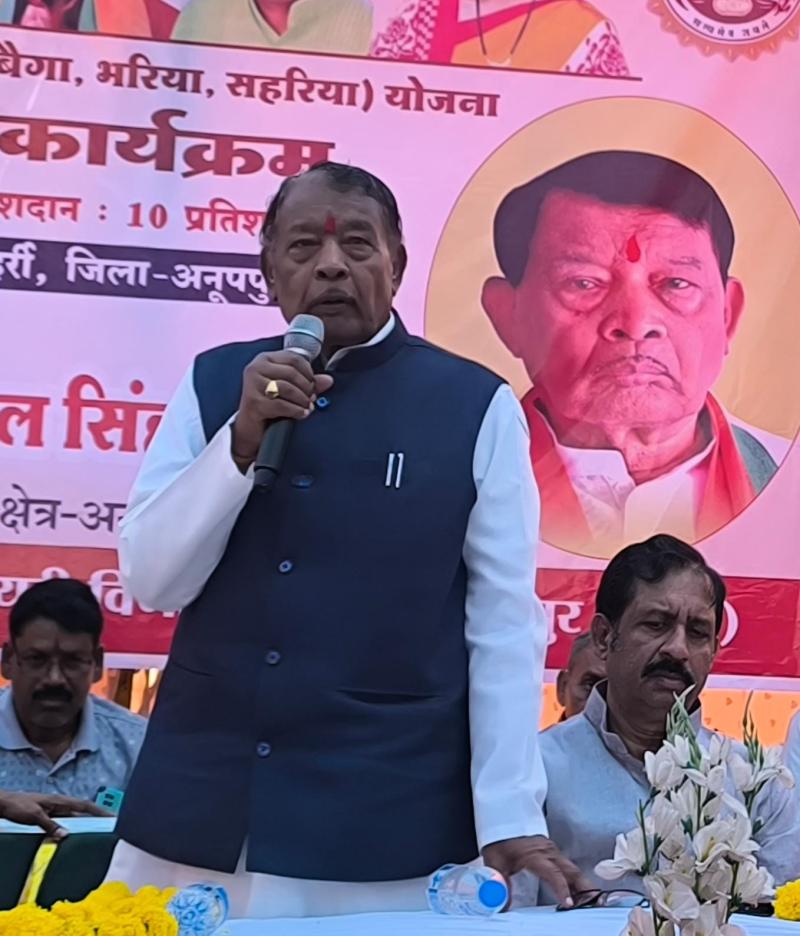 अनूपपुर 28 मार्च 2026- विधायक अनूपपुर श्री बिसाहूलाल सिंह ने कहा है कि मुख्यमंत्री दुधारू पशु प्रदाय योजना का उद्देश्य आर्थिक सशक्तिकरण को बढ़ावा देना तथा हितग्राहियों को स्वरोजगार के लिए प्रोत्साहित करना है। मध्य प्रदेश सरकार विशेष पिछड़ी जनजाति के अंतर्गत चिन्हित जनजातियों के उत्थान एवं स्वरोजगार के लिए अनेक योजनाएं संचालित कर रही है। इन योजनाओं के माध्यम से समुदाय के आर्थिक एवं सामाजिक स्तर में सुधार लाने का निरंतर प्रयास किया जा रहा है। इसी क्रम में मुख्यमंत्री दुधारू पशु प्रदाय विशेष पिछड़ी जनजाति योजना के अंतर्गत पात्र हितग्राहियों को भैंस का वितरण किया जा रहा है। विधायक अनूपपुर श्री बिसाहूलाल सिंह आज अनूपपुर जिले के ग्राम हर्री में आयोजित भैंस इकाई वितरण कार्यक्रम को संबोधित कर रहे थे।