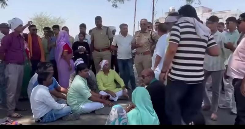 मृतक के परिजनों को न्याय दिलाने सड़क में बैठे रिंकू राम जी मिश्रा