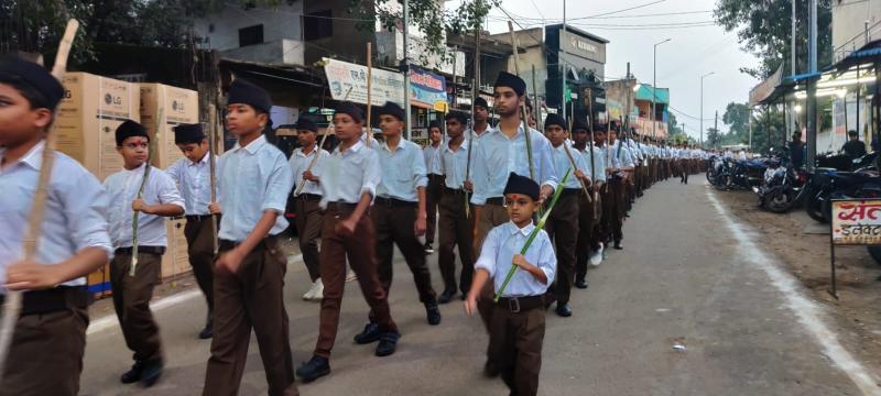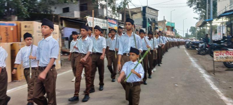 पाली। विजयादशमी पर्व के उपलक्ष्य में राष्ट्रीय स्वयंसेवक संघ (RSS) का भव्य पथ संचलन रविवार को पाली नगर में आयोजित किया गया। संचलन में हजारों स्वयंसेवक पूर्ण गणवेश में अनुशासित पंक्तियों में शामिल हुए।