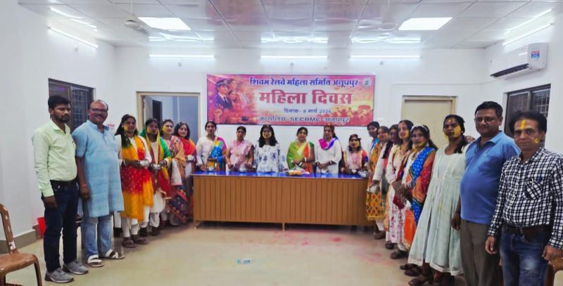 अनूपपुर , विश्व महिला दिवस 08 मार्च के अवसर पर रेलवे मजदूर कांग्रेस शाखा अनूपपुर शिवम् रेलवे महिला समिति अनूपपुर के तत्वावधान में मजदूर कांग्रेस शाखा अनूपपुर कार्यालय में महिला दिवस पर महिला सम्मान व रंग पंचमी कार्यक्रम किया गया , मजदूर कांग्रेस शाखा अनूपपुर के शाखा सचिव जयंतो दासगुप्ता ने बताया कि रेलवे मजदूर कांग्रेस बिलासपुर के जोनल महामंत्री पीतांबर लक्ष्मीनारायण व मंडल समन्वयक विजय अग्निहोत्री के निर्देशानुसार मजदूर कांग्रेस शाखा अनूपपुर ने महिला दिवस व रंगपंचमी कार्यक्रम किया गया