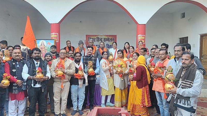 इस क्रम में जिले के ऐतिहासिक एवं पावन शारदा मंदिर परिसर में विराट हिन्दू सम्मेलन के शुभारंभ के तहत कलश पूजन एवं कलश वितरण कार्यक्रम का आयोजन श्रद्धा, भक्ति और उल्लासपूर्ण वातावरण में किया गया। वैदिक मंत्रोच्चार के बीच विधिवत पूजन कर समाज, राष्ट्र और आयोजन की सफलता की कामना की गई।