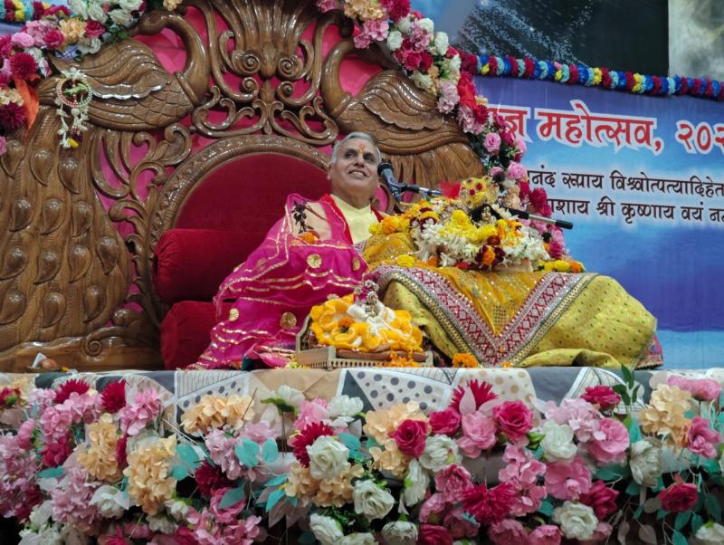 इस अवसर पर कथा व्यास पंडित श्री राधेश्याम शास्त्री जी महाराज (वृंदावन) ने भगवान श्रीकृष्ण की बाल लीलाओं का अत्यंत मनोहारी और संजीव चित्रण प्रस्तुत किया । उनकी कथा से भक्त श्रद्धालु भक्ति रस में सराबोर हो गए । भावविभोर श्रद्धालुओं ने नृत्य करते हुए गोवर्धन पूजा का आध्यात्मिक वातावरण निर्मित किया ।