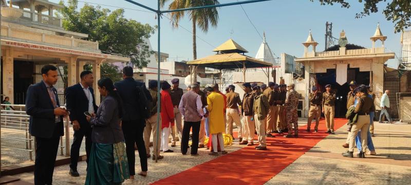 परिसर में रेड कार्पेट बिछाया गया है और हर गतिविधि पर नजर रखी जा रही है। सुरक्षा के दृष्टिकोण से श्रद्धालुओं की आवाजाही को नियंत्रित किया गया है, ताकि दर्शन कार्यक्रम शांतिपूर्ण और व्यवस्थित रूप से संपन्न हो सके।