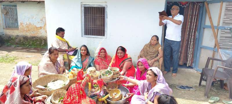 व्रत रखने वाली महिलाएं पूजन स्थल , घर के आंगन बीच को साफ-सुथरा करके भैंस के गोबर से लिपाई कर विशेष पौधों जैसे कांस और छूला के डाली तथा बेर की टहनी को लाकर स्थापित करती हैं साथ ही भैंस का दूध , दही , घी , महुआ का पका प्रसाद , पसही का चावल आदि का भोग अर्पित किया जाता है । मिट्टी का पात्र (चुकरिया) , बांस से बना टुकनी,महुआ के पत्तल , दोना, सात प्रकार के अनाज , माता का श्रृंगार आदि सब पूजन में अर्पित किया जाता है । पूजा के बाद व्रती महिलाएं महुआ , दही , पसही का चावल , भाजी आदि प्रसाद रूप में ग्रहण करती हैं ।