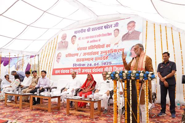 भोपाल : पंचायत एवं ग्रामीण विकास, श्रम मंत्री प्रहलाद सिंह पटेल ने गुरुवार को रायसेन जिले की सांची जनपद पंचायत के ग्राम सिलपुरी में आयोजित पंचायत प्रतिनिधियों का प्रशिक्षण/जनसंवाद उन्मुखीकरण कार्यक्रम सह सम्मान समारोह का कन्या-पूजन और दीप-प्रज्जवलन कर शुभारंभ किया गया। कार्यक्रम में जिला पंचायत अध्यक्ष यशवंत मीणा सहित जनप्रतिनिधि, अधिकारी/कर्मचारी एवं नागरिक उपस्थित थे। मंत्री पटेल ने कहा कि हमारी पंचायत व्यवस्था आत्मनिर्भर व स्वाबलंबी होनी चाहिए। सभी अपने ग्राम को स्वाबलंवी और आत्मनिर्भर बनाने के लिए कार्य करें। उन्होंने पंच-सरपंचों को संबोधित कराते हुए कहा कि ग्राम के विकास के लिए योजना बनाकर काम करें, राशि की कमी नहीं है। ग्राम के विकास के लिए राशि का उपयोग इस प्रकार करें कि ग्राम का विकास हो और ग्रामीणों का भविष्य बेहतर हो।
