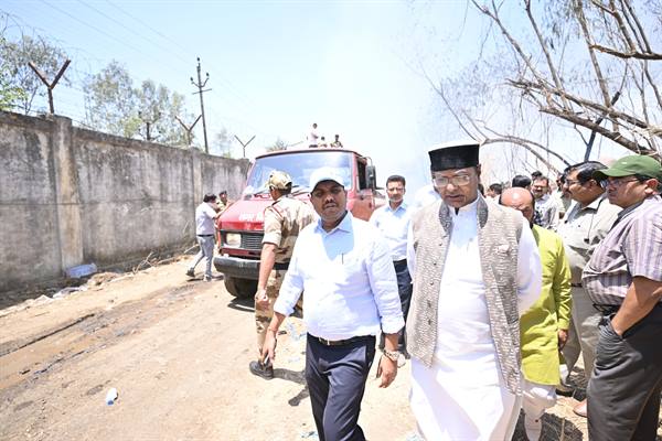 भेल परिसर में लगी आगजनी की सूचना पर मौके पर पहुंचे मंत्री सारंग