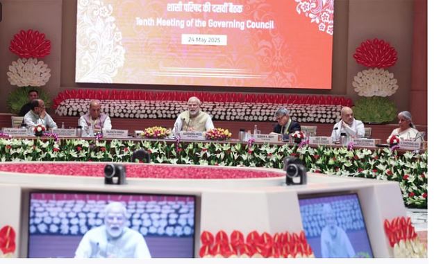नई दिल्ली । प्रधानमंत्री नरेंद्र मोदी की अध्यक्षता में नीति आयोग की 10वीं गवर्निंग काउंसिल की बैठक शनिवार को हुई। नई दिल्ली में गवर्निंग काउंसिल की बैठक का विषय 'विकसित राज्य के लिए विकसित भारत@2047' था। बैठक में प्रधानमंत्री मोदी ने कहा कि हमें विकास की गति बढ़ानी होगी। अगर केंद्र और सभी राज्य एक साथ आएं और टीम इंडिया की तरह मिलकर काम करें, तो कोई भी लक्ष्य असंभव नहीं है। प्रधानमंत्री मोदी ने कहा कि विकसित भारत हर भारतीय का लक्ष्य है। जब हर राज्य विकसित होगा, तो भारत विकसित होगा। यह 140 करोड़ नागरिकों की आकांक्षा है। पीएम मोदी ने कहा कि भारत में तेजी से शहरीकरण हो रहा है। हमें भविष्य के लिए तैयार शहरों की दिशा में काम करना चाहिए। विकास, नवाचार और स्थिरता हमारे शहरों के विकास का इंजन होना चाहिए। राज्यों को वैश्विक मानकों के अनुरूप कम से कम एक पर्यटन स्थल विकसित करना चाहिए। वहां सभी सुविधाएं और बुनियादी ढांचे उपलब्ध कराने चाहिए। एक राज्य- एक वैश्विक गंतव्य। इससे पड़ोसी शहरों का भी पर्यटन स्थल के रूप में विकास होगा।