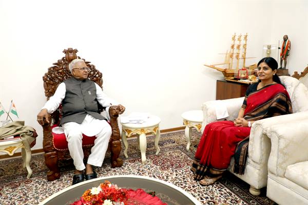 भोपाल : राज्यपाल मंगुभाई पटेल से केन्द्रीय स्वास्थ्य एवं परिवार कल्याण, रसायन एवं उर्वरक राज्यमंत्री अनुप्रिया पटेल ने राजभवन में गुरूवार को सौजन्य भेंट की। राज्यपाल पटेल ने केन्द्रीय राज्यमंत्री पटेल का श्रीफल, अंग वस्त्र और स्मृति चिन्ह स्वरूप सांची स्तूप की प्रतिकृति भेंट कर स्वागत किया। राज्यपाल पटेल का केन्द्रीय राज्यमंत्री ने पुष्पगुच्छ एवं शॉल भेंट कर अभिनंदन किया।