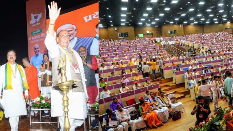लोगों के दिल तक पहुंचना है हमें: रक्षा मंत्री राजनाथ सिंह ने बीजेपी की राज्य कार्यकारिणी बैठक को संबोधित करते हुए कहा कि यह केवल एक संगठन की बैठक मात्र नहीं है बल्कि एक संकल्प सभा है, उस संकल्प की सिद्धि के लिए, जो बिहार और भारत दोनों को नई ऊंचाइयों पर ले जाने के लिए हमें लेना है. उन्होंने कहा कि प्रधानमंत्री मोदी ने बीते 11 वर्षों में यह सिद्ध किया है कि भारत बदल सकता है और भारत आगे बढ़ सकता है, बशर्ते नेतृत्व सुदृढ़ हो, नीयत साफ हो, नीति स्पष्ट हो और राष्ट्र-हित सर्वोपरि रखा जाएं. हमें यहीं विश्वास बिहार के हर निवासी के दिल तक पहुंचाना है.