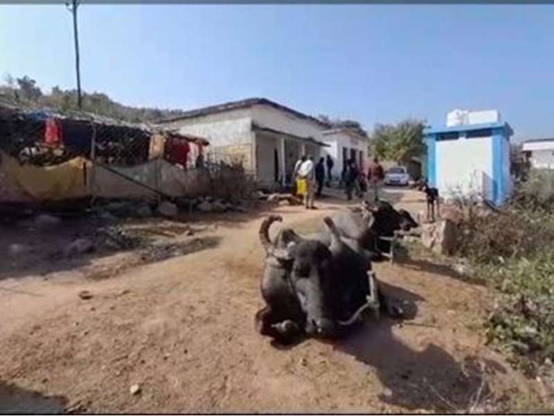 भैंसों के तबेले में बदला स्कूल भवन, बच्चों की पढ़ाई सड़क और मंदिर पर पहुंची