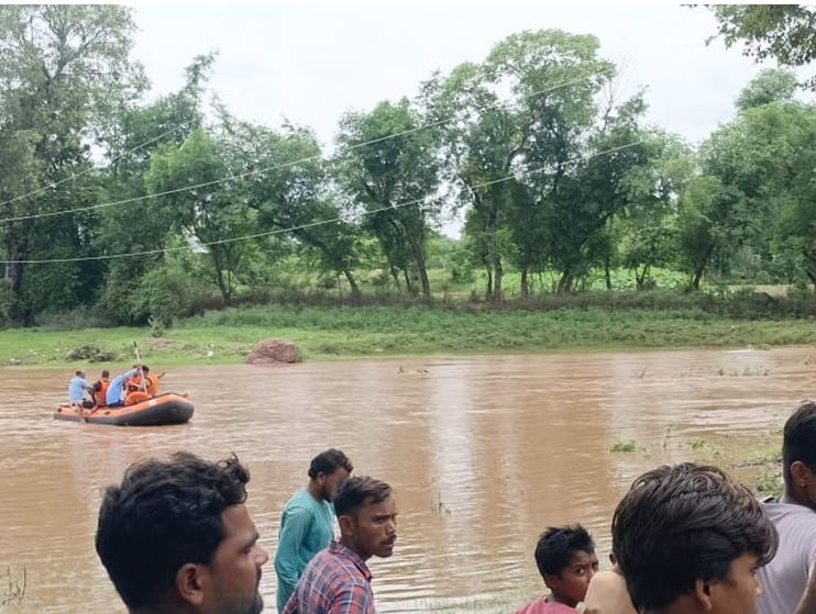 शिवपुरीः जिले में पिछले दो दिनों से झमाझम बारिश का दौर जारी है। इस दौरान लोगों की लापरवाही के चलते कई हादसे सामने आ रहे हैं। ऐसा ही एक हादसा जिले के रन्नौद कस्बे से सामने आया। गांव से निकलने वाली बसेड़ी नदी में नहाने गया 25 वर्षीय युवक सोनू जाटव लापता हो गया। देर रात तक जब वह घर नहीं लौटा तो परिजनों ने रन्नौद थाना पहुंचकर गुमशुदगी की सूचना दी। युवक के गायब होने की सूचना मिलने पर पुलिस तत्काल मौके पर पहुंची। घटनास्थल पर पहुंचने के साथ ही मामले की जानकारी एसडीईआरएफ को दी गई। शुक्रवार दोपहर करीब 3 बजे एसडीईआरएफ की रेस्क्यू टीम नदी पर पहुंची और युवक की तलाश शुरू की गई।