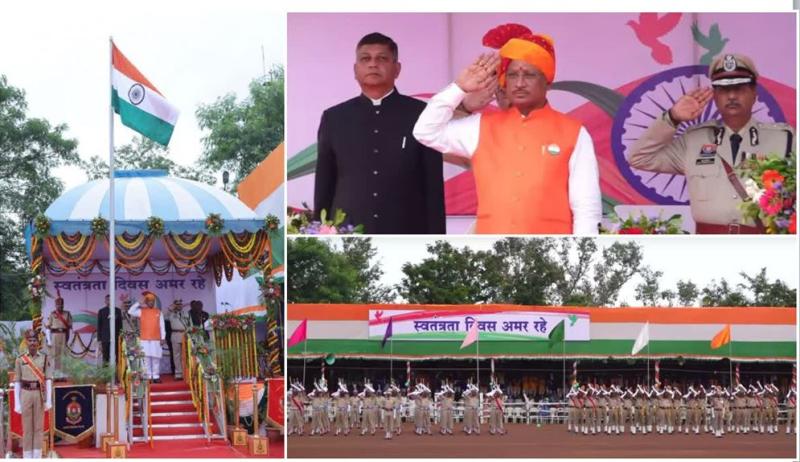 रायपुरः पूरे देश में 79वां स्वतंत्रता दिवस धूमधाम से मनाया जा रहा है। इसी कड़ी में छत्तीसगढ़ की राजधानी रायपुर के पुलिस ग्राउंड में स्वतंत्रता दिवस समारोह कार्यक्रम हुआ। सीएम विष्णुदेव साय ने ध्वजारोहण किया। इसके बाद परेड की सलामी ली। सलामी लेने के बाद प्रदेश मुखिया ने प्रदेश की जनता को संबोधित किया। भाषण में उन्होंने प्रदेश में चल रही विकास योजनाओं का जिक्र किया।