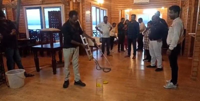 पर्यटन स्थल सतरेंगा के कैंटीन में एसी के अंदर घुस कर बैठा था सर्प-मची अफरा-तफरी