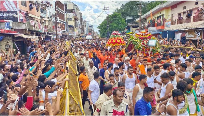 पूरा मामला कुछ इस प्रकार है कि 18 अगस्त सोमवार को विश्व प्रसिद्ध भगवान महाकाल की अंतिम और राजसी सवारी मे लाखों की संख्या में भक्त शामिल थे। तभी ढाबा रोड जगदीश मंदिर के पास एक घर का छज्जा अचानक गिर गया। वायरल हो रहे वीडियो मे साफतौर पर देखा जा रहा है कि जिस समय यह छज्जा गिरा उस दौरान सिर्फ एक व्यक्ति ही छज्जे में खड़ा था और भजन मंडली की महिलाएं भी इस मकान के आगे से निकल रही थी लेकिन इस घटना के दौरान छज्जे पर खड़ा व्यक्ति जहां बाल-बाल बच गया। वही सवारी में शामिल महिला श्रद्धालु भी छज्जा गिरने से बच गई।