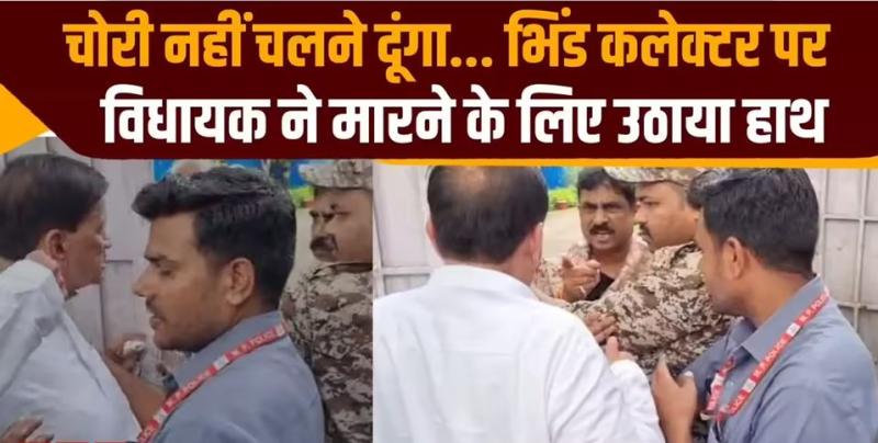 गौरतलब है कि बुधवार को भिंड के एक विधायक का वीडियो जमकर वायरल हुआ, जिसमें कलेक्टर संजीव श्रीवास्तव और भिंड विधायक नरेंद्र सिंह कुशवाह के बीच जमकर बहस होते नजर आ रही थी। इस बहस ने बाद में झड़प का रूप लिया तो मामला मारपीट तक पहुंच गया। नौबत यहां तक आ गई कि कलेक्टर ने विधायक को उंगली दिखाकर औकात दिखाने कि बात कही। इस पर विधायक ने भी कलेक्टर को मारने के लिए हाथ उठा लिया। इसके बाद से ही प्रशासनिक और राजनीतिक गलियारों में माहौल गर्म हो गया।