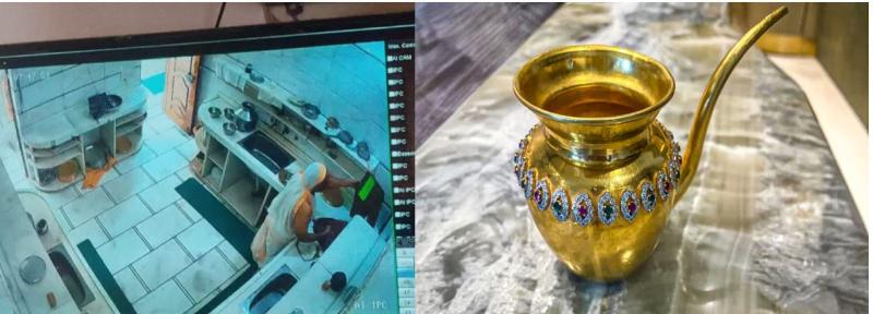 बीते दिनों दिल्ली के ऐतिहासिक लाल किला परिसर के 15 अगस्त पार्क में जैन समाज का धार्मिक अनुष्ठान चल रहा था। इसी दौरान सोने का एक कीमती कलश चोरी हो गया, जिसकी कीमत लगभग एक करोड़ रुपये थी। सीसीटीवी फुटेज में साफ दिखा कि धोती पहना एक शख्स बड़ी चतुराई से पूजा स्थल तक पहुंचा और मौके का फायदा उठाकर कलश को अपने झोले में डालकर वहां से फरार हो गया।