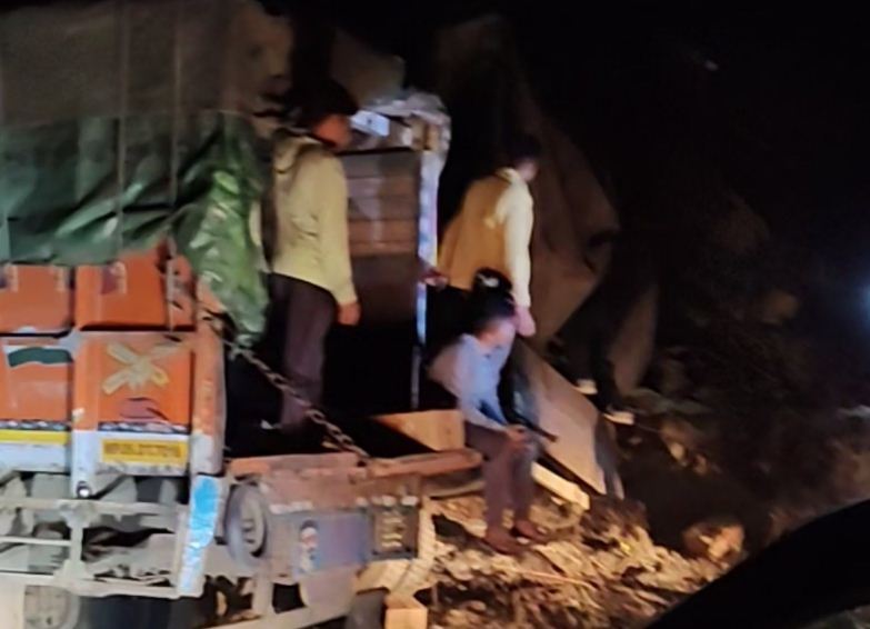 ट्राला दुर्घटनाग्रस्त होते ही शराब की लूट, रोकने गई पुलिस टीम पर बरसे पत्थर