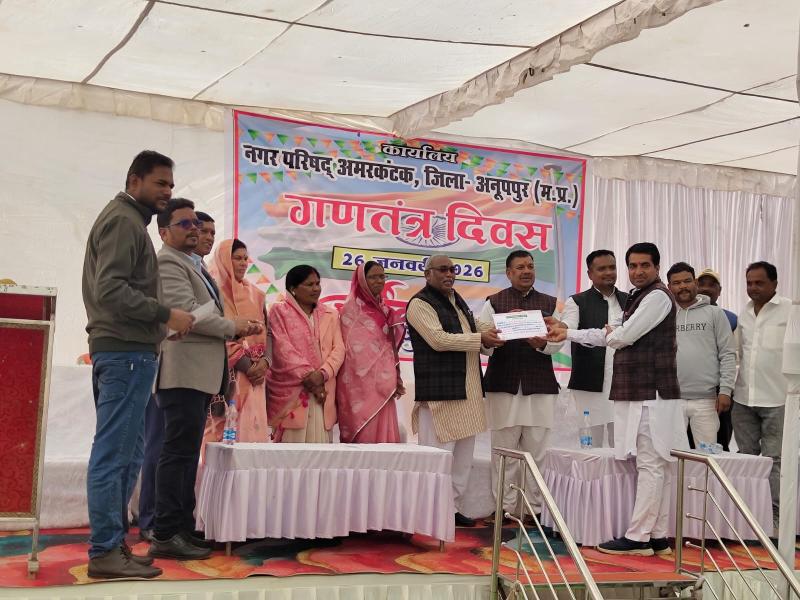 अमरकंटक - मां नर्मदा जी की उद्गम स्थली / पवित्र नगरी अमरकंटक जो मध्य प्रदेश के प्रमुख पर्यटन एवं धार्मिक तीर्थ स्थली है । आज गणतंत्र दिवस के पावन अवसर पर अमरकंटक में 77वां राष्ट्रीय पर्व पूरे हर्षोल्लास , उत्साह एवं देशभक्ति के वातावरण में परंपरागत ढंग से मनाया गया ।