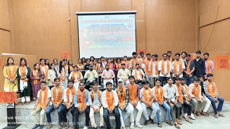अखिल भारतीय विद्यार्थी परिषद द्वारा इंदिरा गांधी राष्ट्रीय जनजाति विश्वविद्यालय अमरकंटक की नवीन कार्यकारिणी घोषित की गई, जिसमें सर्वप्रथम विद्या की देवी मां सरस्वती व युवाओं के प्रेरणा स्रोत स्वामी विवेकानंद जी की प्रतिमा में मल्यार्पण कर दीप प्रज्ज्वलित करते हुए कार्यक्रम का शुभारंभ किया गया, कार्यक्रम में मुख्य रूप से महाकौशल प्रांत के प्रांत संगठन मंत्री श्री मनोज यादव जी द्वारा छात्रों को संबोधित करते हुए कहा कि विद्यार्थी परिषद स्थापना कल से ही छात्रहित के साथ-साथ समाज के सभी क्षेत्रों में लगातार काम करते आया है साथ ही आज का छात्र आज का युवा है , और युवाओं को सही दिशा व राष्ट्र हित की ओर अग्रसर व प्रेषित करने वाला एक मात्र छात्र संगठन अखिल भारतीय विद्यार्थी परिषद है।