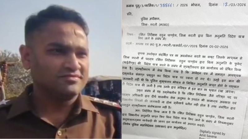 दरअसल, निरीक्षक राहुल पांडे को थाईलैंड जाने के लिए पुलिस मुख्यालय भोपाल से अनुमति नहीं मिली थी. बिना अनुमति के विदेश घूमनकर आने पर उनके खिलाफ पुलिस मुख्यालय भोपाल ने एसपी को कार्रवाई के निर्देश दिए हैं. मुख्यालय से जारी पत्र में लिखा गया है कि राहुल पांडे निरीक्षक ने जो स्पष्टीकरण प्रस्तुत किया है, वह संतोषजनक नहीं है|