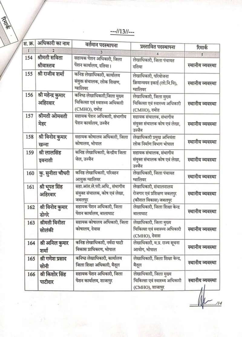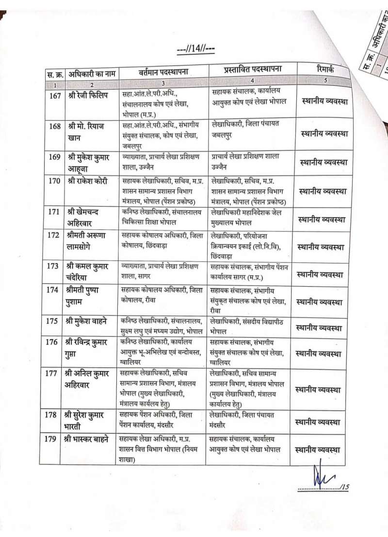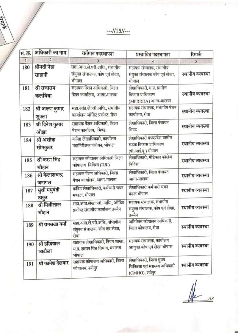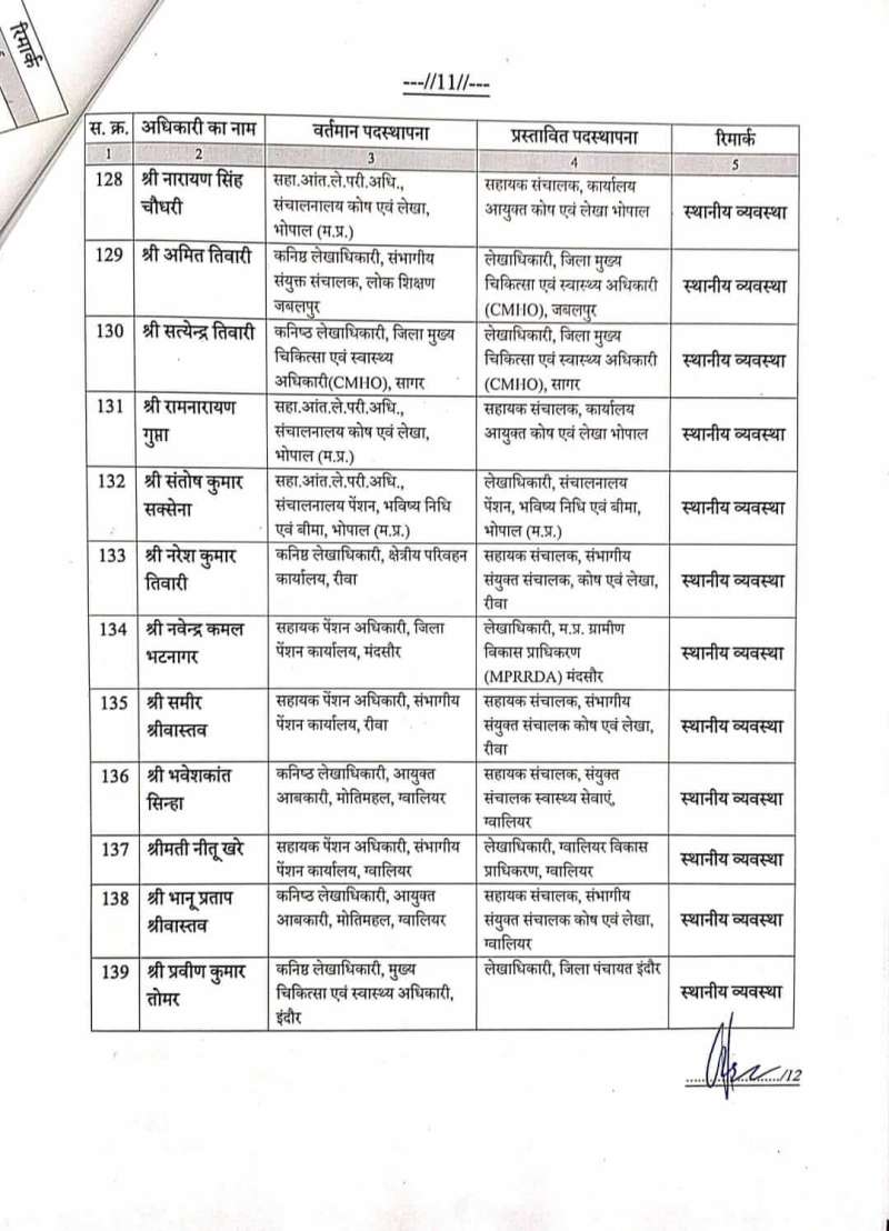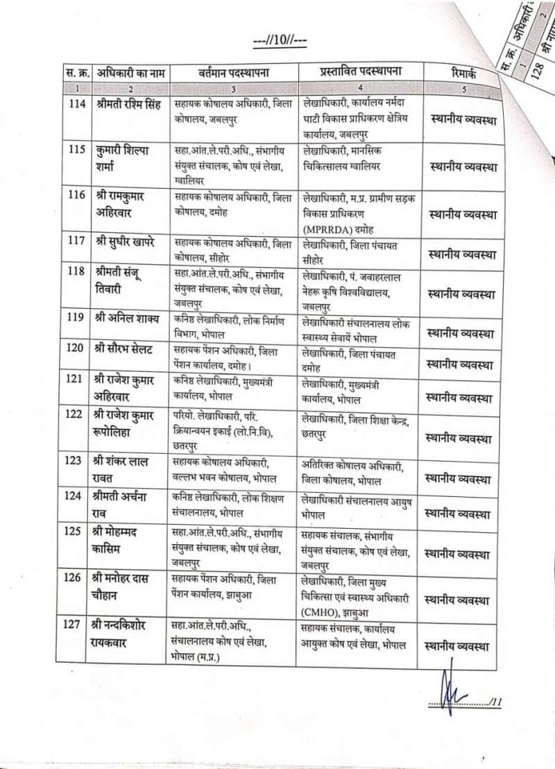 मध्य प्रदेश में देर रात फिर तबादला एक्सप्रेस दौड़ी है. राज्य शासन ने राज्यपाल के नाम से आदेश जारी करते हुए वित्त विभाग में थोकबंद तबादले किए हैं. मध्य प्रदेश की मोहन यादव सराकार ने कार्य सुविधा और प्रशासनिक कारणों का हवाला देते हुए सहायक संचालक स्तर के अधिकारियों को यहां से वहां किया है. वित्त विभाग में लंबे समय बाद इतनी बड़ी प्रशासनिक सर्जरी हुई है.